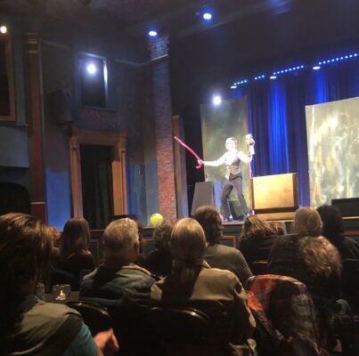 And though only one human actor stood onstage, there were truly three performers at work: one actor, two puppets, and one puppeteer.